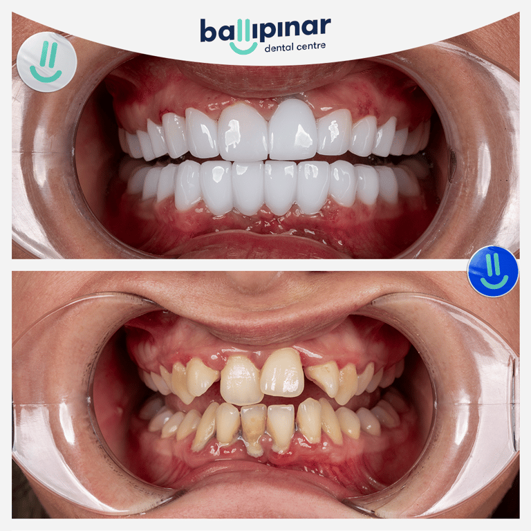 View Ballipinar's before and after photos of dental crowns in Turkey for impressive results in cosmetic dentistry. Discover the potential for your teeth!